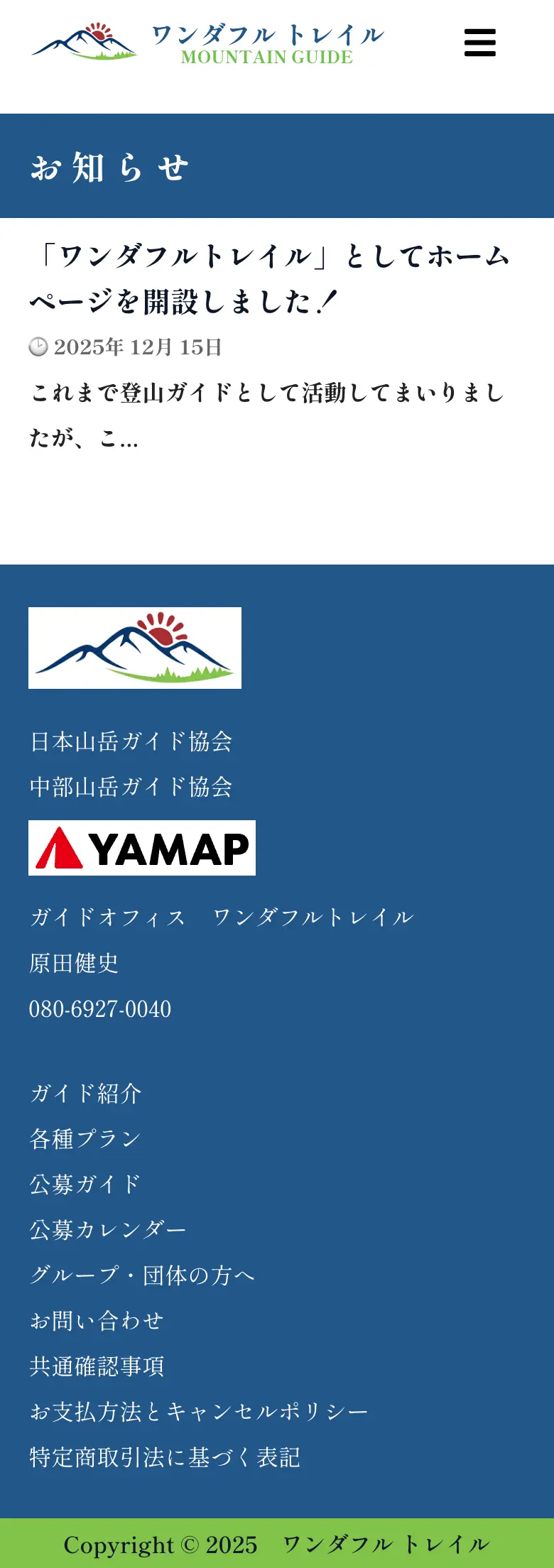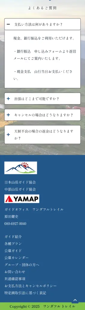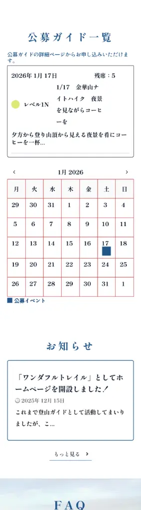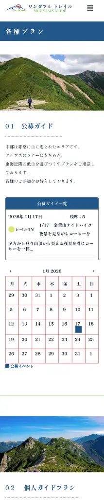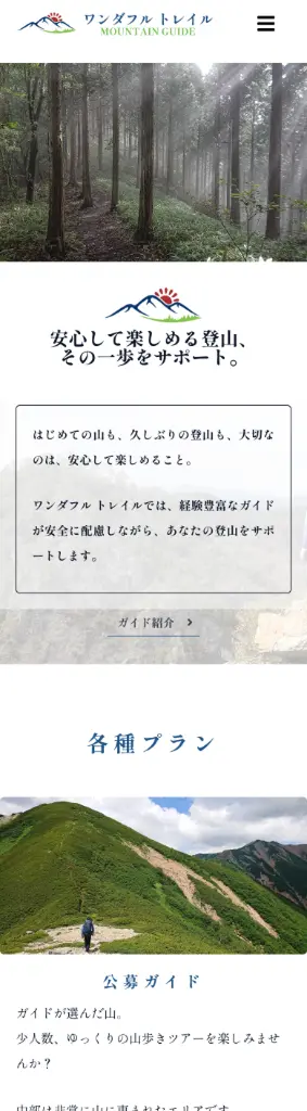 名刺代わりになる登山ガイドのサイトを制作し、活動内容や案内できる山を分かりやすく掲載しました。