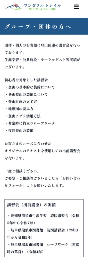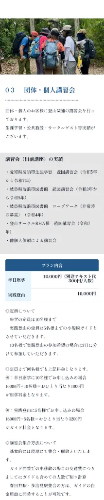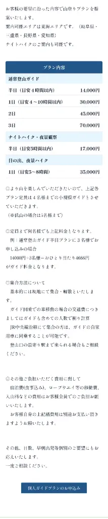 どんなことをしているのか、どんな山を案内することができるのかを載せたいです。