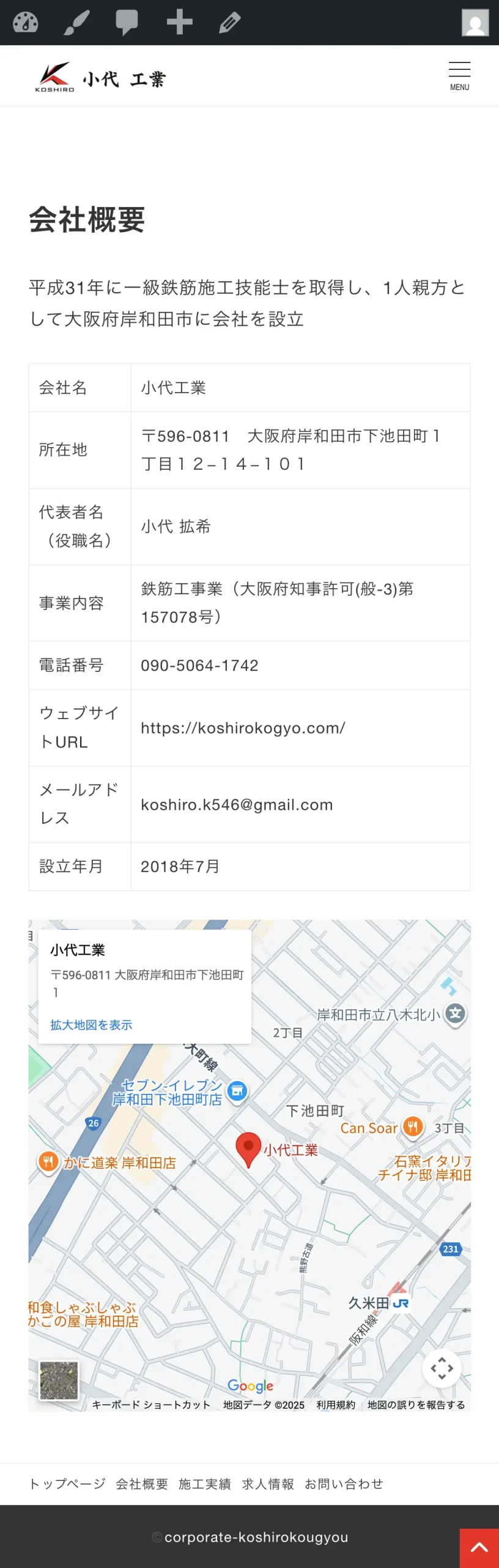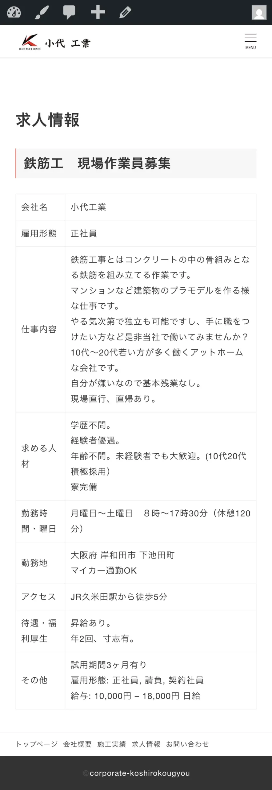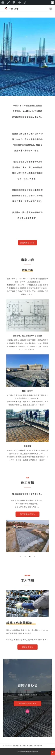 小代工業様は大阪を中心に鉄筋工事を手がける建設業(鉄筋工)の会社です。